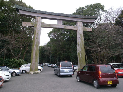 原木のものとしては日本一を誇る、高さ13mの大鳥居が、大濠公園側の参道にあります。