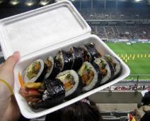 韓国の海苔巻はご飯がごま油と塩で味付けされています。 中には、エゴマの葉やツナ、たくあん、卵焼きなどが入ってます~ (そのほかキムチを入れたり、なんでもアリです!)