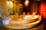 ドクターフィッシュや足湯エリアは、柔らかいヒノキ調のインテリアです。 |