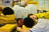 1階のヒーリングゾーンは男女共用のスペースで、家族やカップル、さまざまな人が横になってTVを見たり談話したりしています。 |