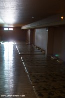 大浴場を左に進めばアカすりコーナー。正面を突き進むと突きあたりがサウナ、左側に露天風呂があります。 |