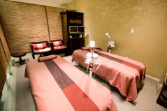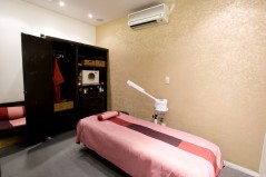 個室で着替えを済ませたら、フットスパを行います。軽くふくらはぎから足までをマッサージします。 |