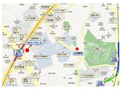 地下鉄5号線「西大門(ソデムン)駅」5番と6番の出口よりホールにつながるビルで地下2階となります。