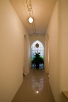 真っ白な壁でとっても高級感溢れる廊下。電気やインテリアもシンプルでとってもお洒落です。 |