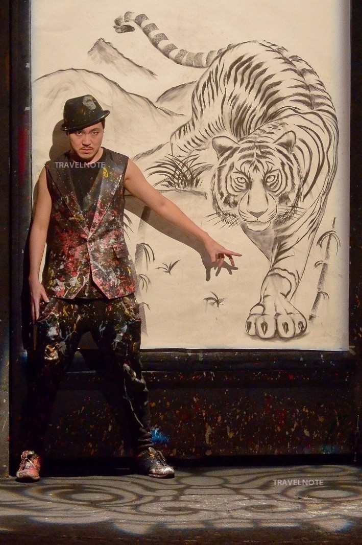 猛スピードで描かれる「スピードドローイング」では、今にも飛び出てきそうな迫力満点の絵が描かれます。瞬きする間もなく描かれる巨大画に感動!