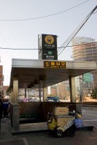 地下鉄2号線「忠正路(チュンジョンロ)」駅⑤番出口を出て道なりに直進します。