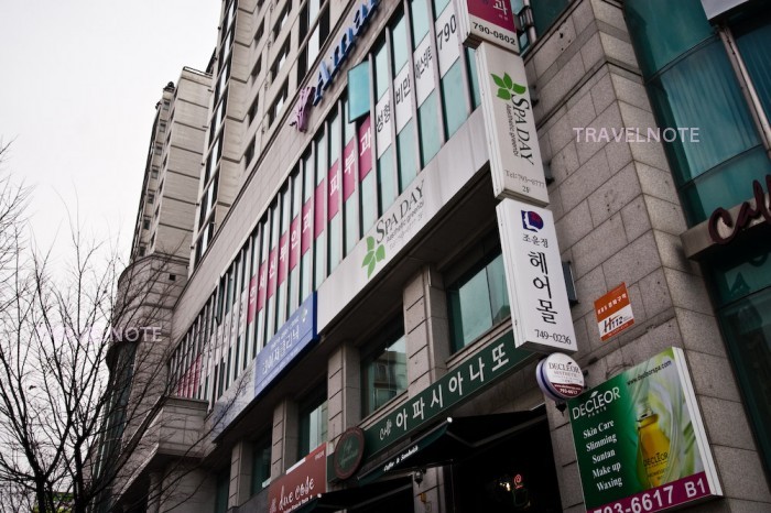 交差点をまっすぐ渡った角に、1階がカフェになっているビルがあります。