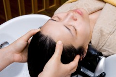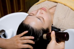 栄養たっぷりのエッセンスを髪全体に塗布しながら、指圧をします。 |