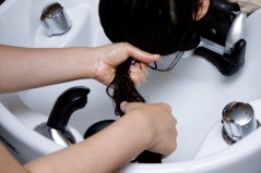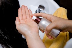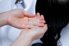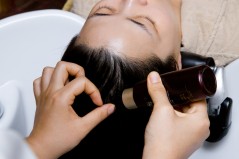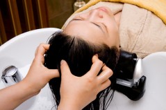 栄養たっぷりのトリートメントを髪全体に塗布して流します。 |