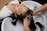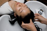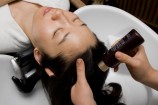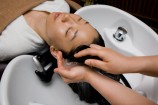 栄養たっぷりのトリートメントを髪全体に塗布して流す。 |