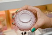 カップ内に記されたラインまで、水を入れパックブラシでよくかき混ぜます。その後、顔に均一に塗ります。約10~15分後冷水が固まったら微温水で洗い流します。(3,000ウォン) |
