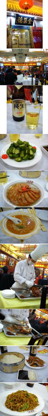・レンコンと餅米これは、「上海料理」らしいです。上海料理って何が有名か知りませんが、このメニューはありゆるところに載っていて、レンコンが好きな私はどうしてもってことで食べてみました。結果、「ま、まずい・・・・・」。これ、レンコンの穴に炊いた餅米が入っていて、シロップの中に入っている感じ。甘い。